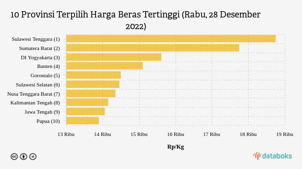 10 Provinsi dengan Harga Beras Paling Mahal (Rabu, 28 Desember 2022) -
