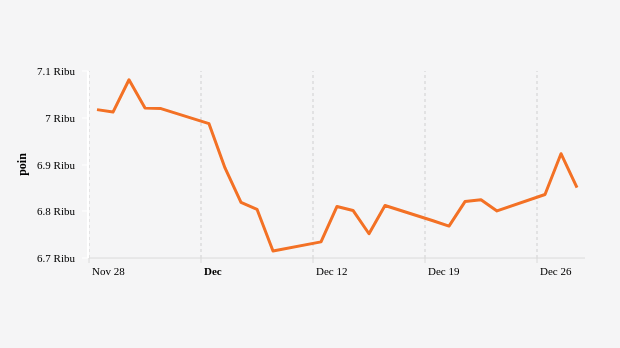 Usai Dua Hari Menguat, IHSG Turun ke 6.850,52 (Rabu, 28 Desember 2022) -