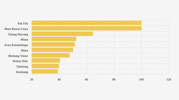 10 Kabupaten/Kota dengan BOR Rumah Sakit Covid-19 Tertinggi Nasional (Minggu, 25 Desember 2022) -