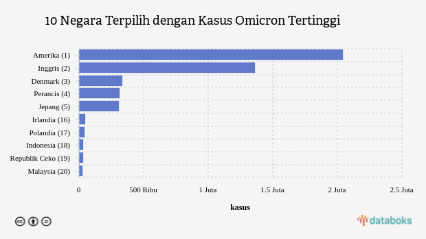 10 Negara dengan Kasus Omicron Terbanyak di Dunia (Sabtu, 24 Desember 2022)