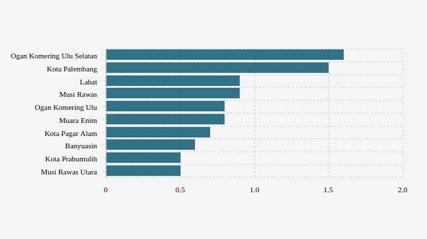 Jumlah Konfirmasi Positif Covid-19 Mingguan di Ogan Komering Ulu Selatan Menjadi yang Terbanyak di Sumatera Selatan (Senin, 19 Desember 2022) -