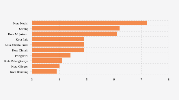 10 Kabupaten/Kota dengan Penggunaan Rawat Inap Tertinggi Nasional (Minggu, 18 Desember 2022) -