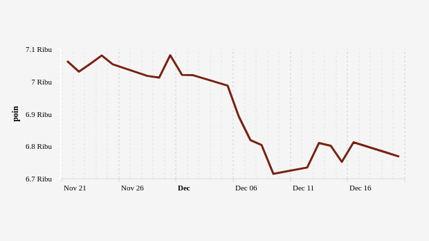 Tren Pelemahan Berlanjut, IHSG Ditutup Turun ke Level 6.768,316 (Selasa, 20 Desember 2022) -
