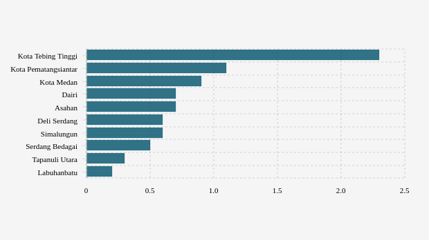 Daftar Kabupaten/Kota dengan Penggunaan Rawat Inap Rumah Sakit Mingguan Terbanyak di Sumatera Utara (Minggu, 18 Desember 2022)