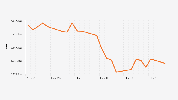 IHSG Ditutup Anjlok ke 6.779,70 (Senin, 19 Desember 2022) -