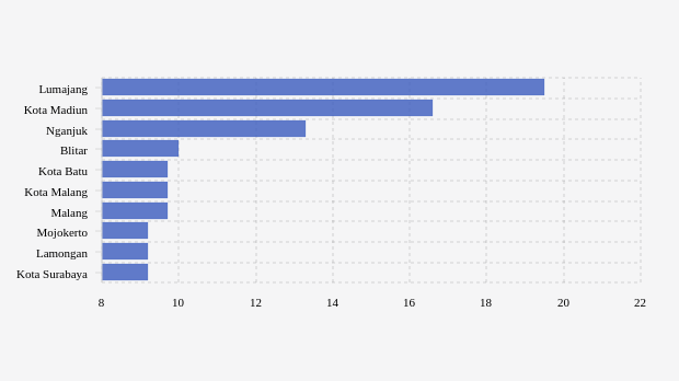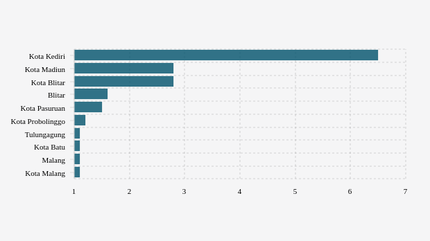 Daftar Kabupaten/Kota dengan Penggunaan Rawat Inap Aglomerasi Mingguan Terbanyak di Jawa Timur (Sabtu, 17 Desember 2022) -