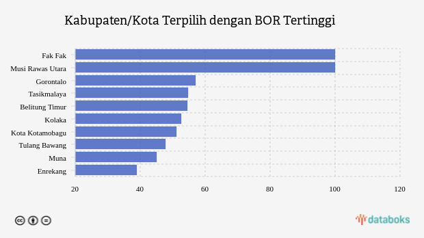 10 Kabupaten/Kota dengan BOR Rumah Sakit Covid-19 Tertinggi Nasional (Sabtu, 17 Desember 2022) -