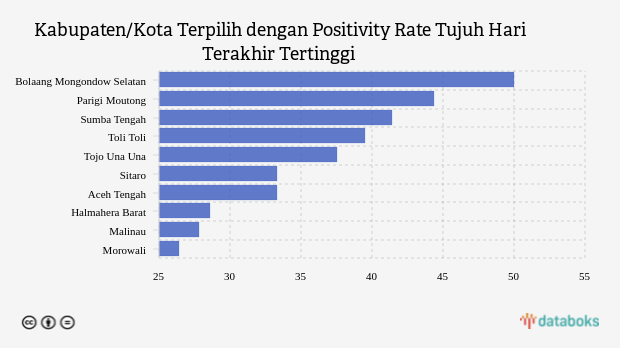 10 Kabupaten/Kota dengan Positivity Rate Tujuh Hari Terakhir Tertinggi Nasional (Rabu, 14 Desember 2022) -