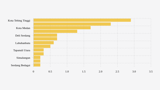 Daftar Kabupaten/Kota dengan Penggunaan Rawat Inap Rumah Sakit Mingguan Terbanyak di Sumatera Utara (Rabu, 14 Desember 2022) -