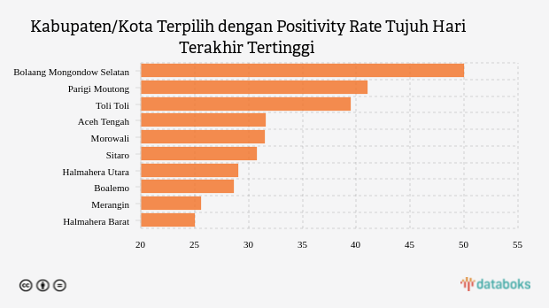 10 Kabupaten/Kota dengan Positivity Rate Tujuh Hari Terakhir Tertinggi Nasional (Selasa, 13 Desember 2022) -