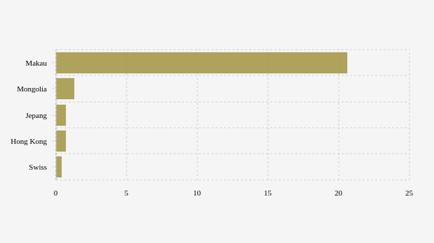 Pertumbuhan Total Kasus Covid-19 per 1 Juta Populasi di Makau Menjadi yang Tertinggi -