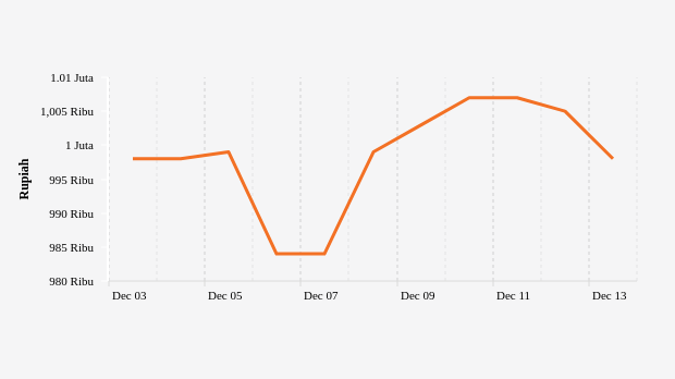Update: Harga Emas Antam Turun Menjadi Rp 998.000 per Gram -
