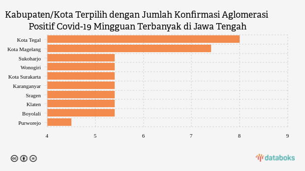 Jumlah Konfirmasi Aglomerasi Positif Covid-19 Mingguan di Kota Tegal Menjadi yang Terbanyak di Jawa Tengah (Sabtu, 10 Desember 2022) -