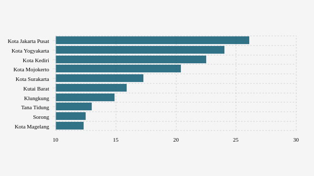 10 Kabupaten/Kota dengan Penggunaan Rawat Inap Tertinggi Nasional (Kamis, 17 November 2022) -