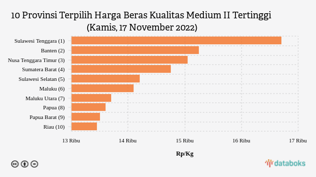 Harga Beras Kualitas Medium II di Sulawesi Tenggara Termahal Se-Indonesia (Kamis, 17 November 2022) -