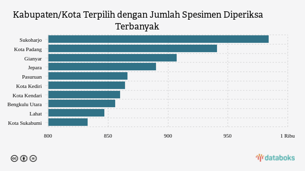 10 Kabupaten/Kota dengan Jumlah Spesimen Diperiksa Terbanyak (Rabu, 02 November 2022) -