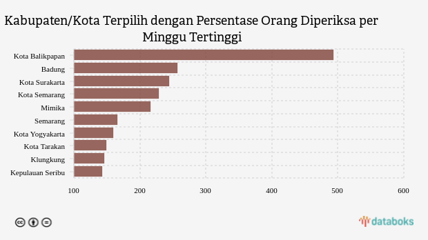 10 Kabupaten/Kota dengan Persentase Orang Diperiksa per Minggu Tertinggi (Senin, 31 Oktober 2022) -