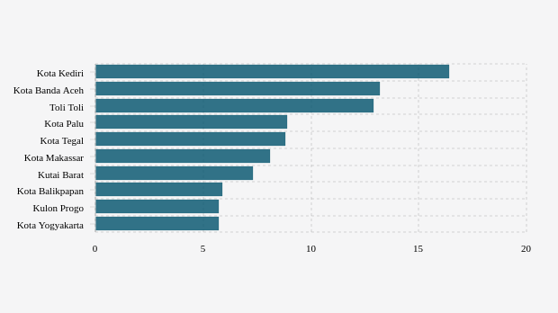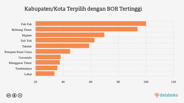 10 Kabupaten/Kota dengan BOR Rumah Sakit Covid-19 Tertinggi Nasional (Senin, 31 Oktober 2022) -