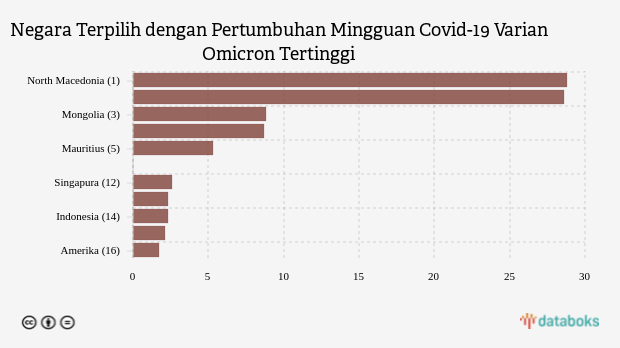 Pertumbuhan Omicron Mingguan, Tertinggi di Negara North Macedonia (Rabu, 02 November 2022) -
