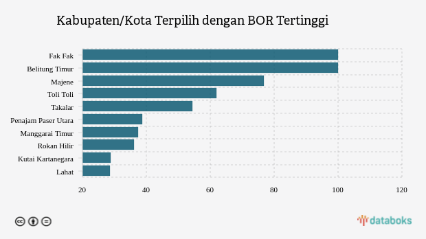 10 Kabupaten/Kota dengan BOR Rumah Sakit Covid-19 Tertinggi Nasional (Minggu, 30 Oktober 2022) -