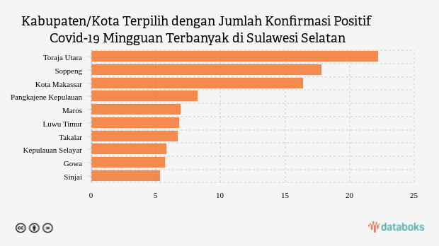 Daftar Kabupaten/Kota dengan Jumlah Konfirmasi Positif Covid-19 Mingguan Terbanyak di Sulawesi Selatan (Minggu, 30 Oktober 2022) -