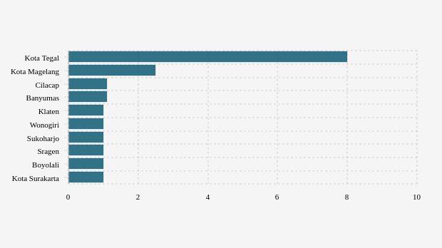 Daftar Kabupaten/Kota dengan Penggunaan Rawat Inap Aglomerasi Mingguan Terbanyak di Jawa Tengah (Jumat, 05 Agustus 2022) -