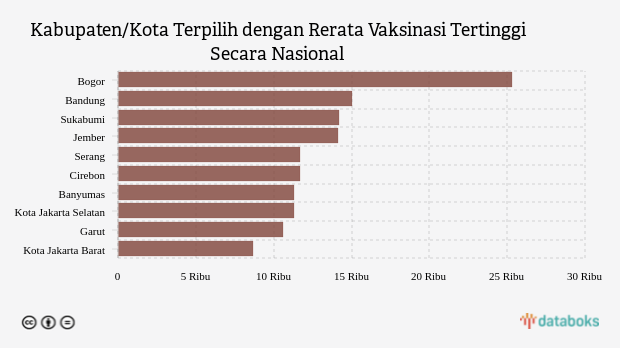 10 Kabupaten/Kota dengan Rerata Vaksinasi Tertinggi Secara Nasional (Jumat, 01 April 2022) -