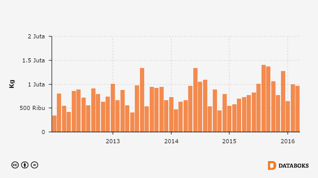 Volume Ekspor Kakao Indonesia ke Indonesia 2012 - 2016 -