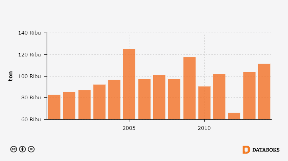 Produksi Ikan, (total)di Nusa Tenggara Timur 2000 - 2014 -