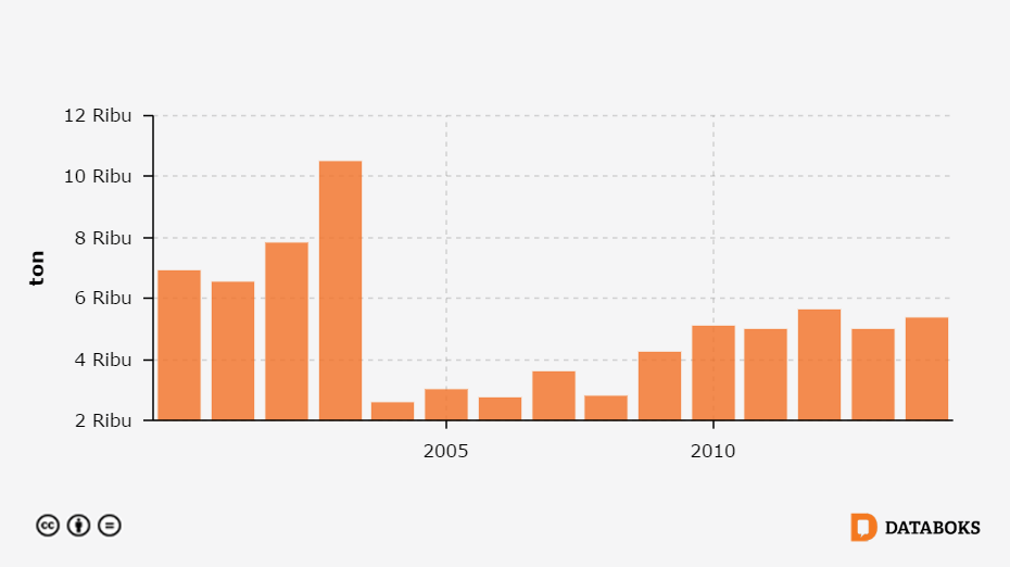 Produksi Ikan, (total)di DI Yogyakarta 2000 - 2014 -