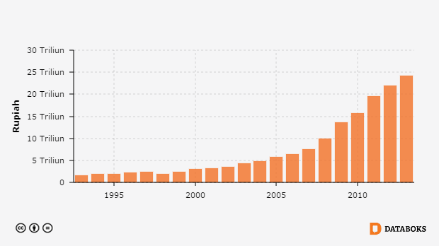 Nilai PDB Terbentuk dari Konsumsi Pemerintah di Sumatera Selatan 1993 - 2013 -