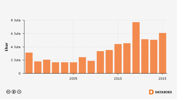 Volume Ekspor Kopi Indonesia ke Rumania 2000 - 2014 -