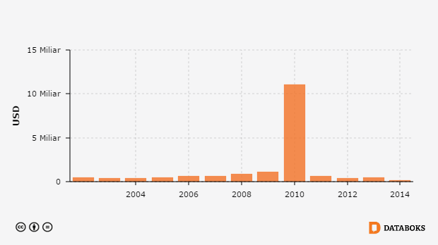 Nilai Ekspor Biji Coklat ke (total) 2002 - 2014 -