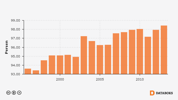 Angka Melek Huruf usia lebih dari 15 di Kota Yogyakarta, DI Yogyakarta 1996 - 2013 -