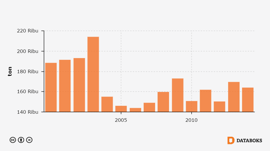 Produksi Ikan, (total)di Lampung 2000 - 2014 -