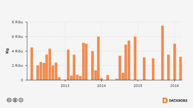 Volume Ekspor Kakao Indonesia ke Indonesia 2012 - 2016