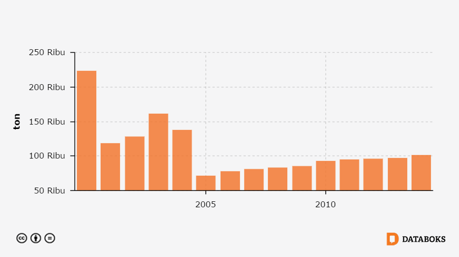 Produksi Ikan, (total)di Sumatera Selatan 2000 - 2014 -