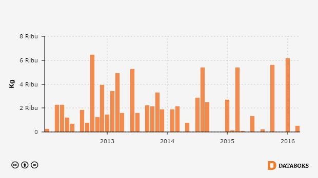 Volume Ekspor Kakao Indonesia ke Indonesia 2012 - 2016