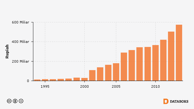 Jumlah Dana Alokasi Umum (DAU) di Kabupaten Pinrang, Sulawesi Selatan 1994 - 2013 -