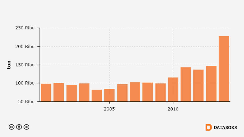 Produksi Ikan, (total)di Nusa Tenggara Barat 2000 - 2014 -