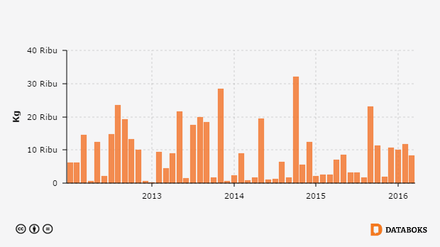 Volume Ekspor Kakao Indonesia ke Indonesia 2012 - 2016 -