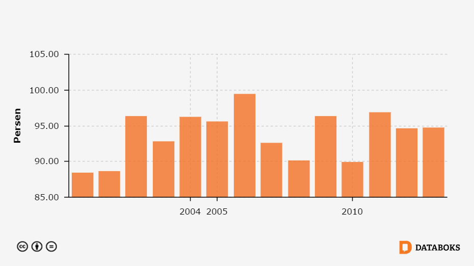Angka Melek Huruf usia lebih dari 15 di Kota Bandar Lampung, Lampung 1996 - 2013 -