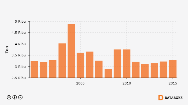 Produksi Telur Ayam Buras menurut Provinsi di Sumatera Barat 2000 - 2015 -