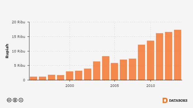 Pengeluaran per Kapita Bulanan Rumah Tangga untuk Pendidikan di Kabupaten Lumajang, Jawa Timur 1996 - 2013 -