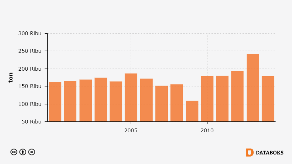 Produksi Ikan, (total)di Kalimantan Selatan 2000 - 2014 -