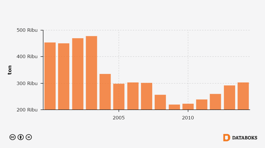 Produksi Ikan, (total)di Sulawesi Selatan 2000 - 2014 -