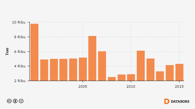 Produksi Telur Ayam Buras menurut Provinsi di Sumatera Selatan 2000 - 2015 -