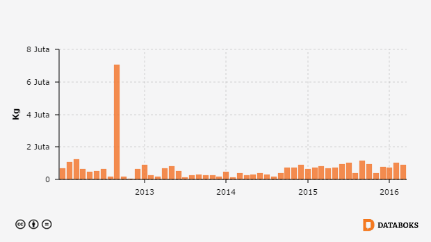 Volume Ekspor Kakao Indonesia ke Indonesia 2012 - 2016 -