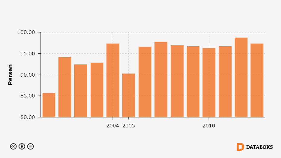 Angka Partisipasi Sekolah SD di Kalimantan Selatan 1996 - 2013 -