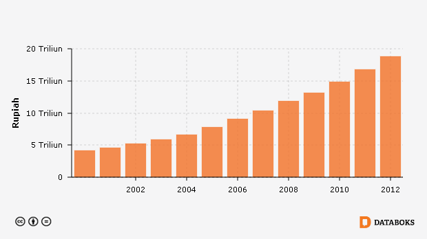 Nilai PDB Harga Berlaku Tidak Termasuk Minyak dan Gas di Kabupaten Jember, Jawa Timur 2000 - 2012 -